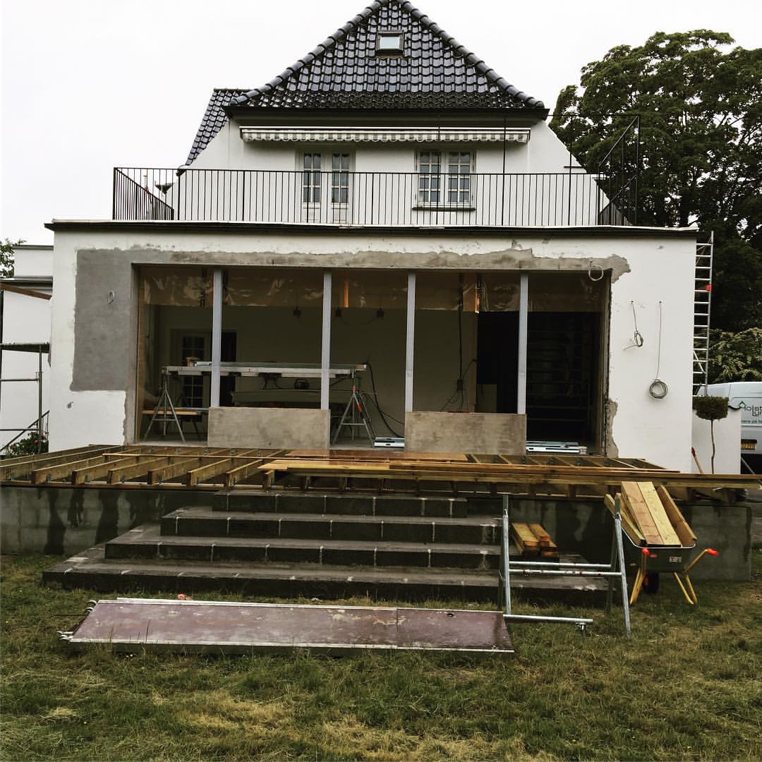 Vi har en fast stab af egne fagfolk inden for tømrer-, snedker-, maler- og murerarbejde, og derudover samarbejder vi med betroede partnere inden for VVS, el og stilladsarbejde. Denne struktur sikrer, at arbejdet udføres effektivt og ensartet, med et smukt og solidt resultat.